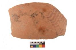 | Description / विवरण | Specimen of potsherd with decorative geometric painting. Type Black on Red Ware . |