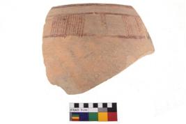 | Description / विवरण | Specimen of potsherd with decorative geometric painting. Type Black on Red Ware . |