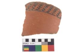 | Description / विवरण | Specimen of potsherd black on red painted pottery. It is fine fabric in sharp contrast with painted design are executed in black pigment. |