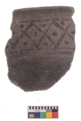 | Description / विवरण | Specimen of potsherd with black decorative geometric painting. |