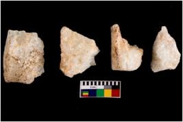 | Description / विवरण | Specimen of cores with weathered cortex and very few fluted marks. Most of them are uneven whereas some are tapering at one end. |