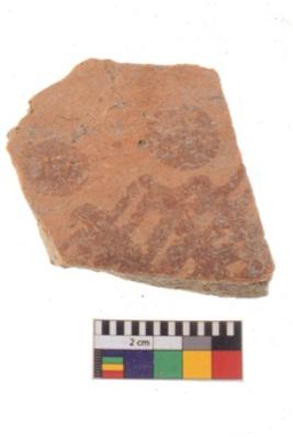| Description / विवरण | Specimen of potsherd with decorative geometric painting. Type Black on Red Ware . |
