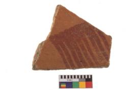 | Description / विवरण | Specimen of potsherd with decorative geometric painting. Type Black on Red Ware . |