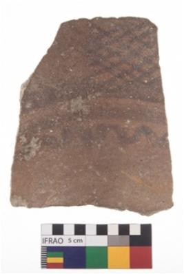 | Description / विवरण | Specimen of potsherd with black decorative geometric Net Pattern painting. |