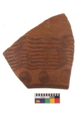 | Description / विवरण | Specimen of potsherd with decorative geometric painting. Type Black on Red Ware . |
