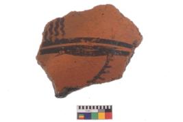 | Description / विवरण | Specimen of potsherd with black decorative geometric painting. |