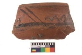 | Description / विवरण | Specimen of potsherd with black decorative geometric painting. |