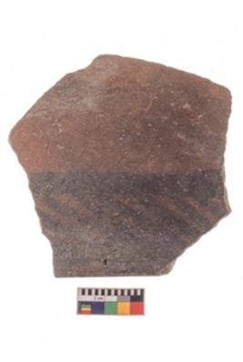 | Description / विवरण | Specimen of potsherd with black decorative geometric painting. |