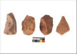 | Description / विवरण | Specimen of flake tool with prominent flaking marks. They are made up of a short flakes with sides trimmed and most of them are rectangular in shape. |