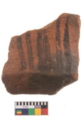 | Description / विवरण | Specimen of potsherd with black decorative geometric painting. |