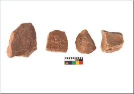 | Description / विवरण | Specimen of flake tool with prominent flaking marks. They are made up of a short flakes with sides trimmed and most of them are rectangular in shape. |