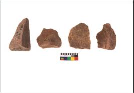| Description / विवरण | Specimen of flake tool with prominent flaking marks. They are made up of a short flakes with sides trimmed and most of them are rectangular in shape. |