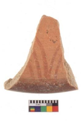 | Description / विवरण | Specimen of potsherd with decorative geometric painting. Type Black on Red Ware . |