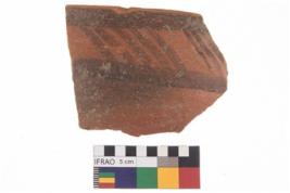 | Description / विवरण | Specimen of potsherd with black decorative geometric painting. |