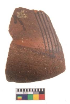 | Description / विवरण | Specimen of potsherd with black decorative geometric painting. |