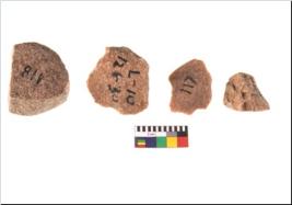 | Description / विवरण | Specimen of flake tool with prominent flaking marks. They are made up of a short flakes with sides trimmed and most of them are rectangular in shape. |