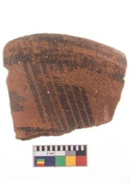 | Description / विवरण | Specimen of potsherd with black decorative geometric painting. |