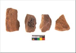 | Description / विवरण | Specimen of flake tool with prominent flaking marks. They are made up of a short flakes with sides trimmed and most of them are rectangular in shape. |