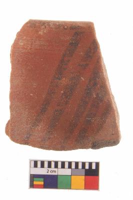 | Description / विवरण | Specimen of potsherd with black decorative geometric Linear painting, Type Black on Red Ware . |