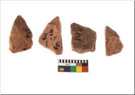 | Description / विवरण | Specimen of flake tool with prominent flaking marks. They are made up of a short flakes with sides trimmed and most of them are rectangular in shape. |