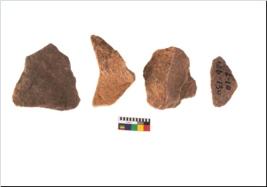 | Description / विवरण | Specimen of flake tool with prominent flaking marks. They are made up of a short flakes with sides trimmed and most of them are rectangular in shape. |