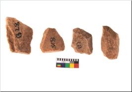 | Description / विवरण | Specimen of flake tool with prominent flaking marks. They are made up of a short flakes with sides trimmed and most of them are rectangular in shape. |