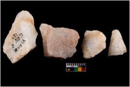 | Description / विवरण | Specimen of a cores with several broad fluted marks. Some of them have sharp edges. |