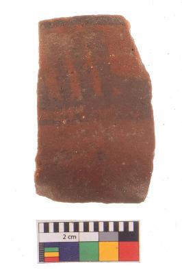 | Description / विवरण | Specimen of potsherd with black decorative geometric Linear painting, Type Black on Red Ware . |