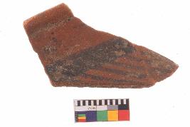 | Description / विवरण | Specimen of potsherd with black decorative geometric Linear painting, Type Black on Red Ware . |