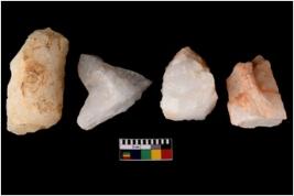 | Description / विवरण | Specimen of a cores with several broad fluted marks. Some of them have sharp edges. |