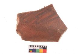 | Description / विवरण | Specimen of potsherd with black decorative geometric Linear painting, Type Black on Red Ware . |