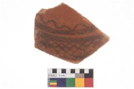 | Description / विवरण | Specimen of potsherd black on red painted pottery. It is fine fabric in sharp contrast with painted design are executed in black pigment. |