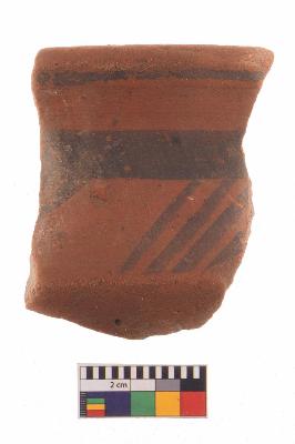 | Description / विवरण | Specimen of potsherd with black decorative geometric Linear painting, Type Black on Red Ware . |
