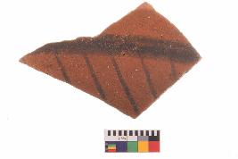 | Description / विवरण | Specimen of potsherd with black decorative geometric Linear painting, Type Black on Red Ware . |