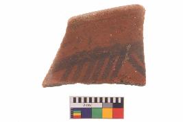 | Description / विवरण | Specimen of potsherd with black decorative geometric Linear painting, Type Black on Red Ware . |