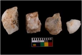| Description / विवरण | Specimen of a cores with several broad fluted marks. Some of them have sharp edges. |