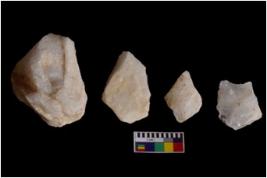 | Description / विवरण | Specimen of a cores with several broad fluted marks. Some of them have sharp edges. |