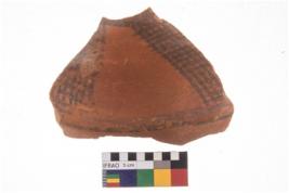 | Description / विवरण | Specimen of potsherd black on red painted pottery. It is fine fabric in sharp contrast with painted design are executed in black pigment. |