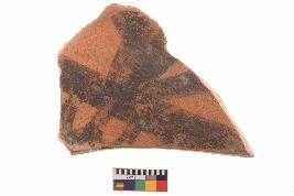 | Description / विवरण | Specimen of Potsherd black on red painted pottery. It is fine fabric in sharp contrast with painted design are executed in black pigment. |