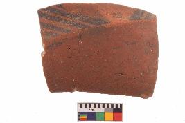 | Description / विवरण | Specimen of potsherd with black decorative geometric Linear painting, Type Black on Red Ware . |