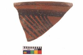 | Description / विवरण | Specimen of potsherd with black decorative geometric Linear painting, Type Black on Red Ware . |