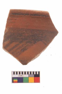 | Description / विवरण | Specimen of potsherd with black decorative geometric Linear painting, Type Black on Red Ware . |
