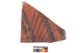 | Description / विवरण | Specimen of potsherd with black decorative geometric Linear painting, Type Black on Red Ware . |