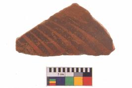 | Description / विवरण | Specimen of potsherd with black decorative geometric Linear painting, Type Black on Red Ware . |