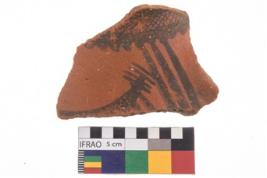 | Description / विवरण | Specimen of potsherd with black decorative geometric painting. |