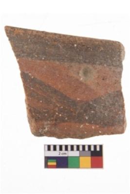| Description / विवरण | Specimen of potsherd with black decorative geometric painting. |