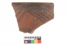 | Description / विवरण | Specimen of potsherd with black decorative geometric painting. |