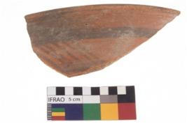 | Description / विवरण | Specimen of potsherd black on red painted pottery. It is fine fabric in sharp contrast with painted design are executed in black pigment. |