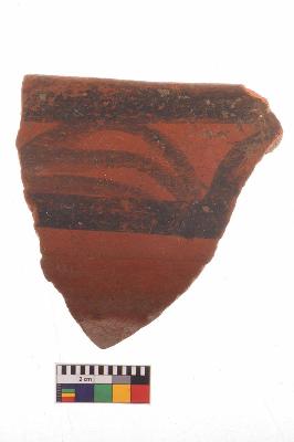 | Description / विवरण | Specimen of potsherd with black decorative geometric Set of triple aches painting, Tpre Black on Red Ware . |