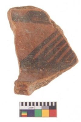 | Description / विवरण | Specimen of potsherd with black decorative geometric painting. |
